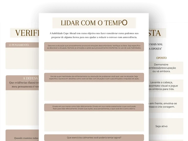 É simples! Você pode utilizar de duas formas, a primeira seria utilizando os materiais como perguntas norteadoras para utilizar nas sessões, a segunda é imprimindo e entregando as atividades para o seu paciente utiliza-las em casa, como “atividade de casa”, para servir de estudo e entendimento para as próximas sessões.